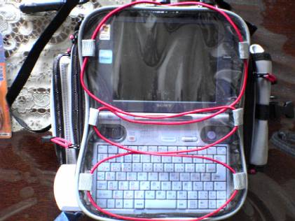早速バイクに向かって作業を……と行きたいところですが、ちょっと落ち着いて、車載するPCとタンクバッグの前処理を行います。